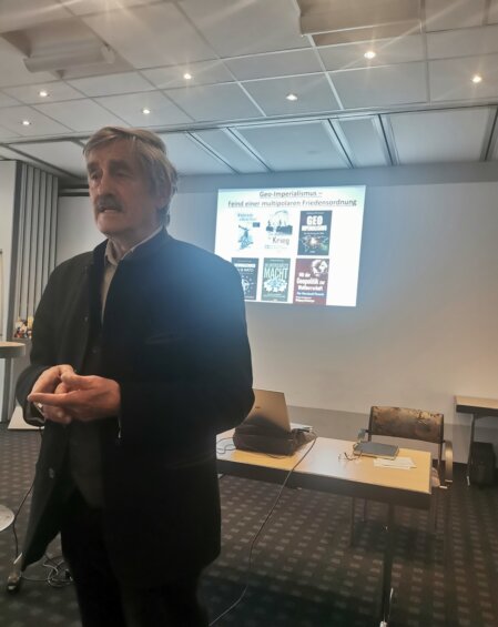 Am Samstag, den 22.3.2025 hielt der bekannte Autor Wolfgang Effenberger (u.a. Pax Americana, Schwarzbuch EU & NATO, Geo-Imperialismus) auf Einladung der Gesellschaft „Freundschaft mit Russland“ um 16 Uhr einen Vortrag im Transmar Travel Hotel in Bindlach. Effenberger gab seinen Vortrag den Titel „Geo-Imperialismus – Feind einer multipolaren Weltordnung.“